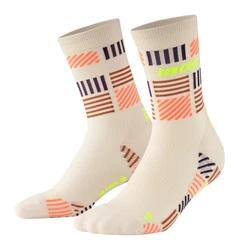 Damskie skarpety kompresyjne sportowe CEP Miami Vibes 80's krótkie białe z pomarańczowo-miętowymi paskami - limitowana edycja