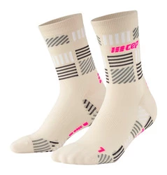 Damskie skarpety kompresyjne sportowe CEP The Run Limited 2024.2 krótkie beżowe z szarymi paskami