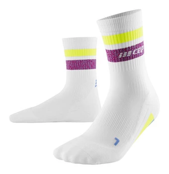 Damskie skarpety kompresyjne sportowe CEP Miami Vibes 80's krótkie białe z fioletowo-żółtymi - limitowana edycja