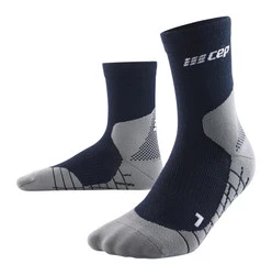 Męskie skarpety kompresyjne trekkingowe CEP z wełną Hiking Light Merino krótkie niebieskie