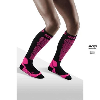 Damskie skarpety kompresyjne sportowe CEP Ski Merino wysokie różowe