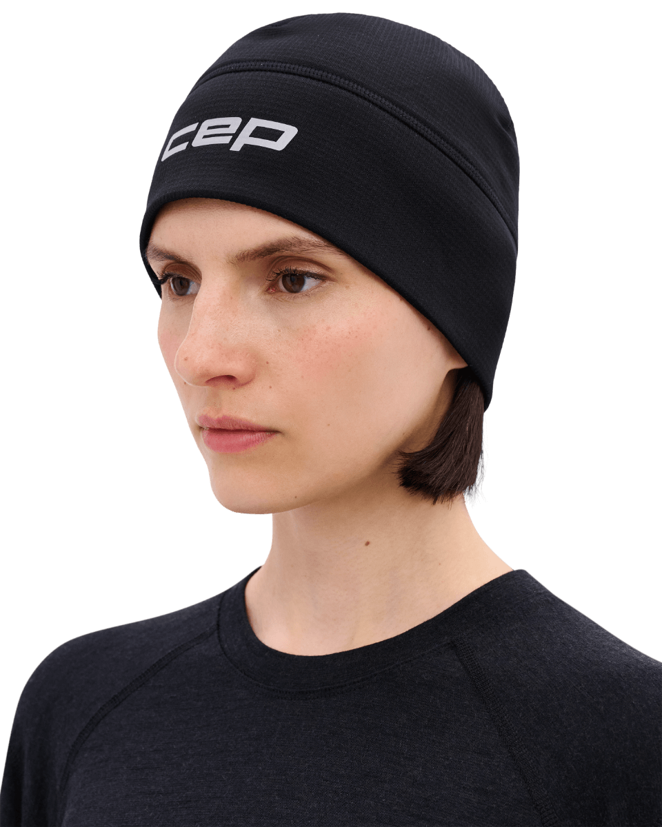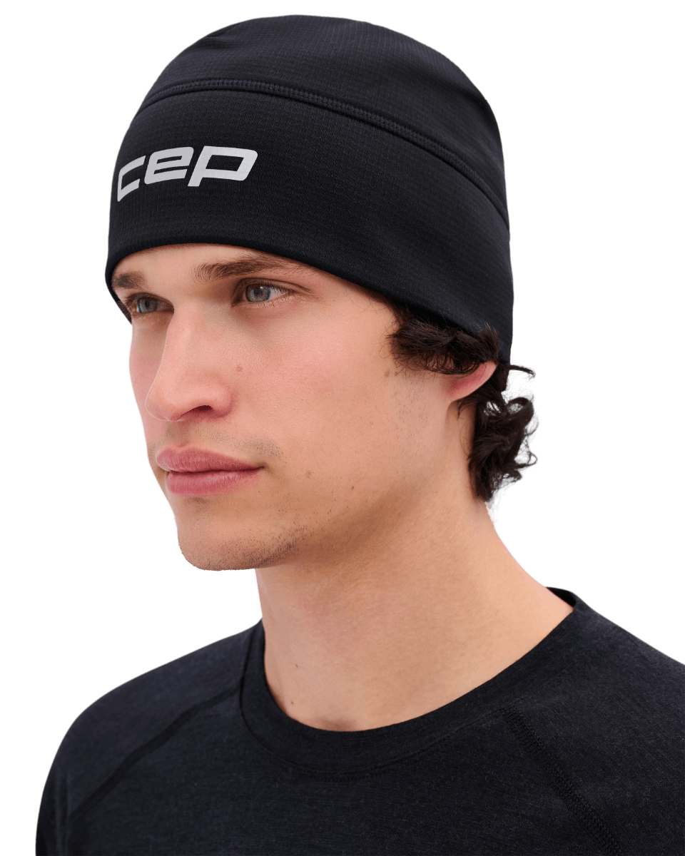 - Ciepła czapka beanie unisex CEP Core Run to lekka ochrona głowy w zimne dni. Chroni przed wiatrem, zatrzymuje ciepło i jednocześnie odprowadza wilgoć, utrzymując komfort podczas biegu. Elastyczny materiał dopasowuje się do kształtu głowy.