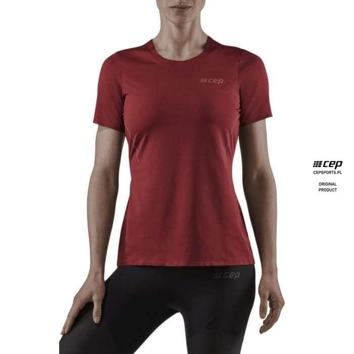 Damska koszulka sportowa z krótkim rękawem CEP bordowa