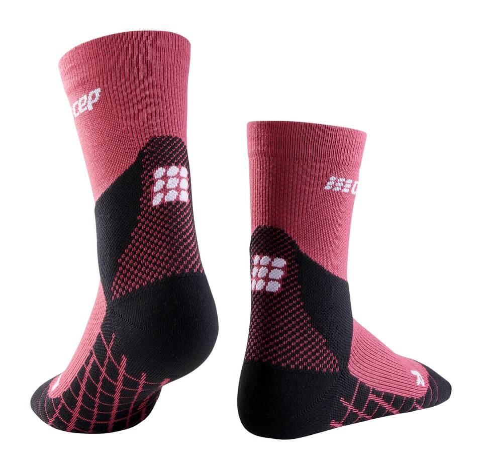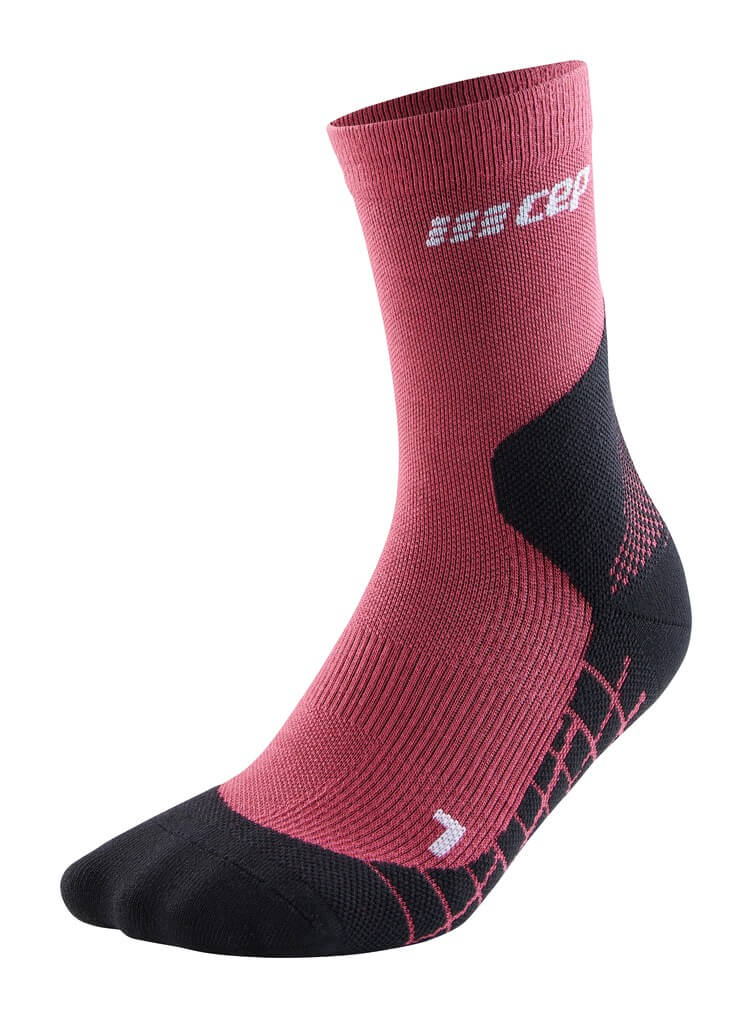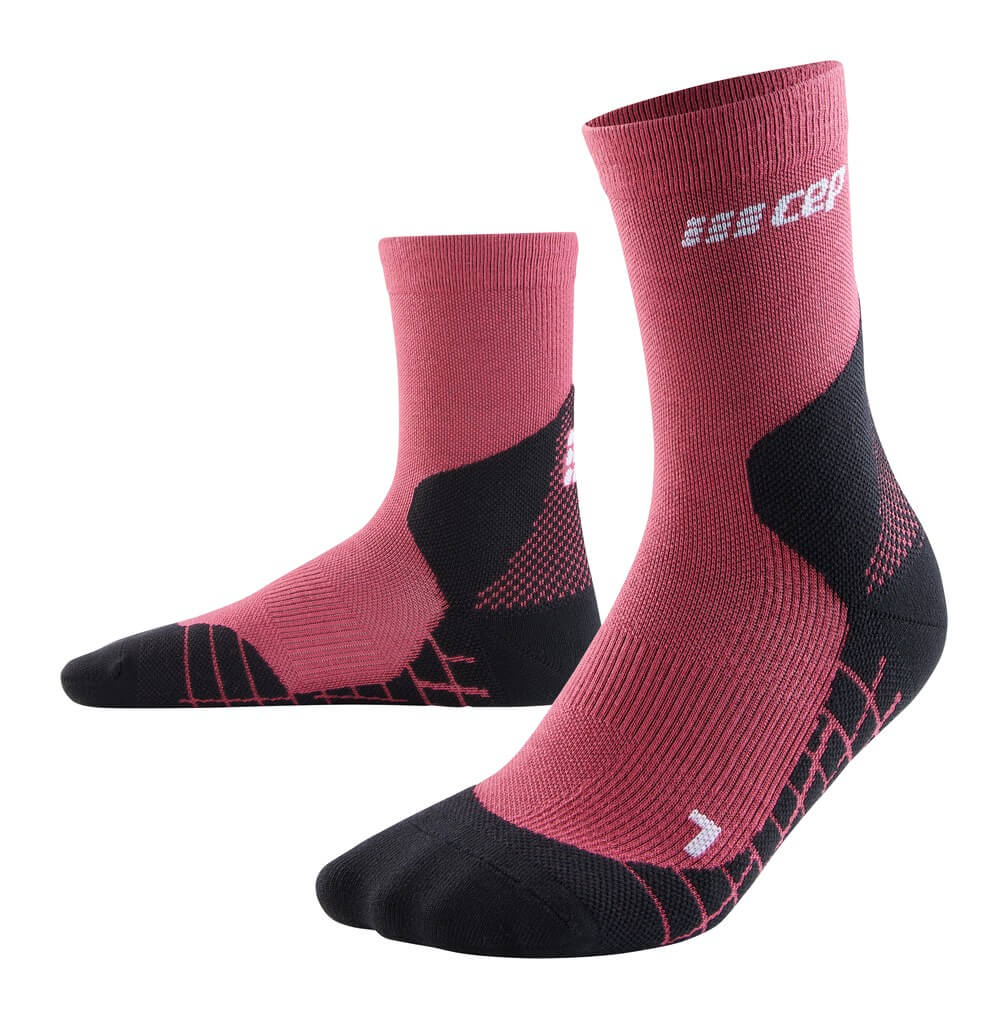 Damskie skarpety kompresyjne trekkingowe CEP z wełną Hiking Light Merino krótkie różowe