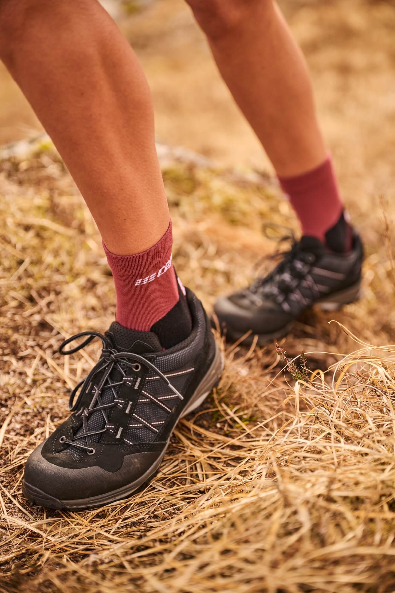 Opinie o Damskie skarpety kompresyjne trekkingowe CEP z wełną Hiking Light Merino krótkie różowe
