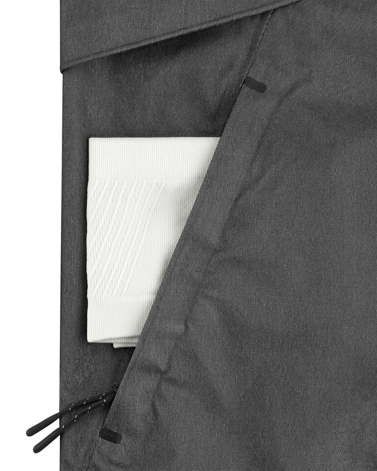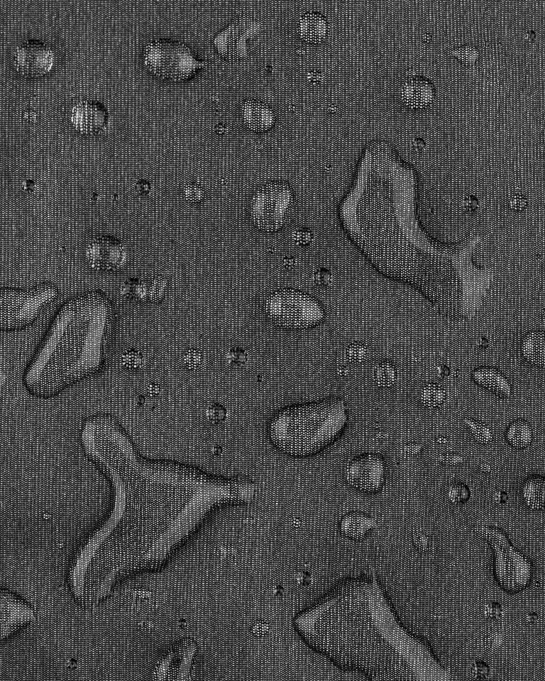 Dodatkowym wsparciem jest hydrofobowe wykończenie tkaniny, które sprawia, że krople deszczu spływają po powierzchni zamiast wsiąkać.