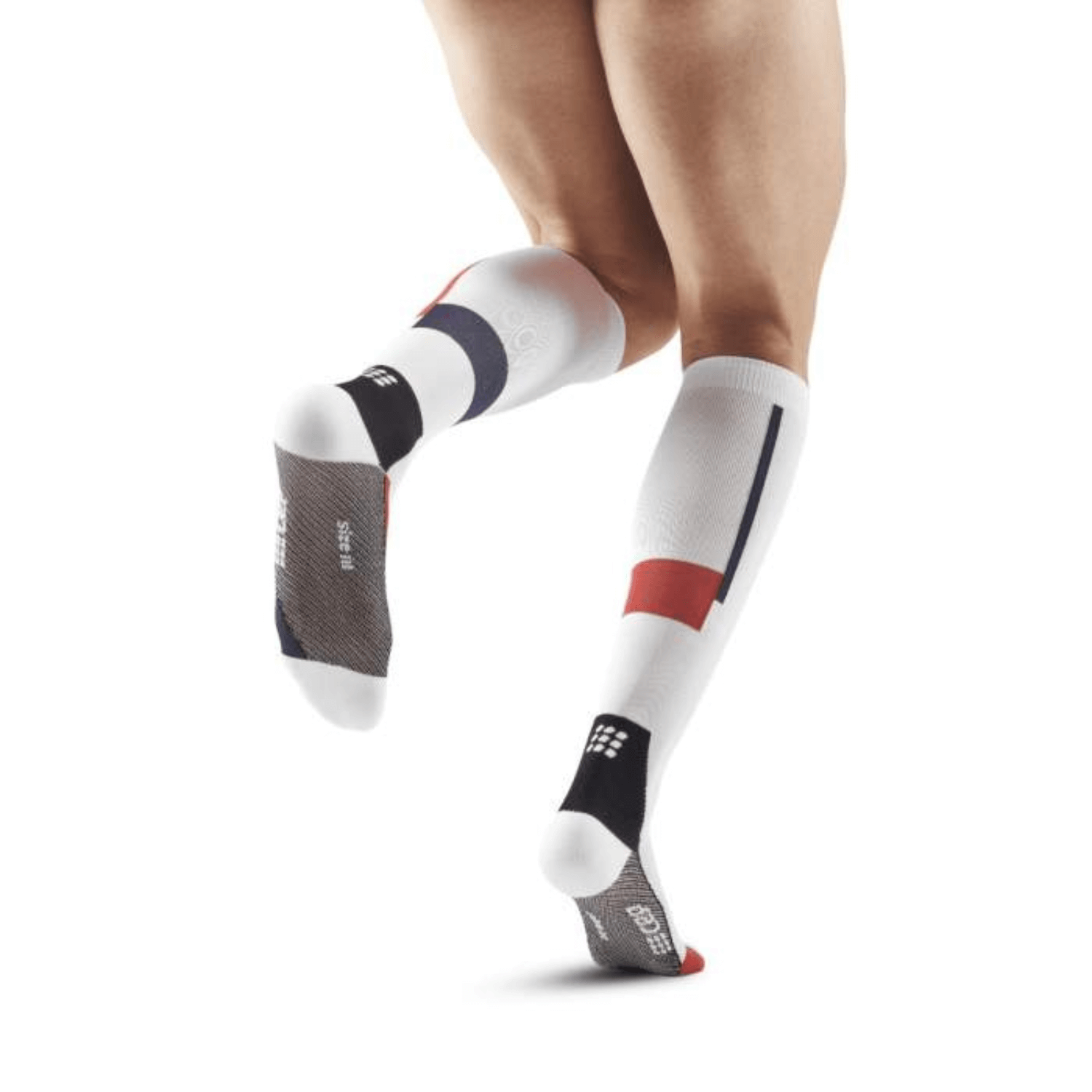 Męskie skarpety kompresyjne sportowe CEP The Run Limited wysokie białe - kolekcja limitowana