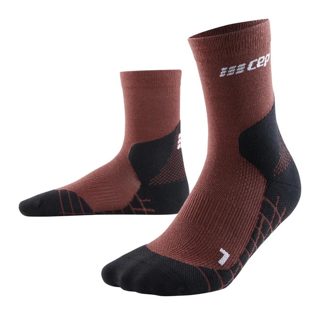 Męskie skarpety kompresyjne trekkingowe CEP z wełną Hiking Light Merino krótkie brązowe