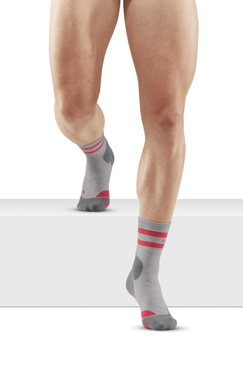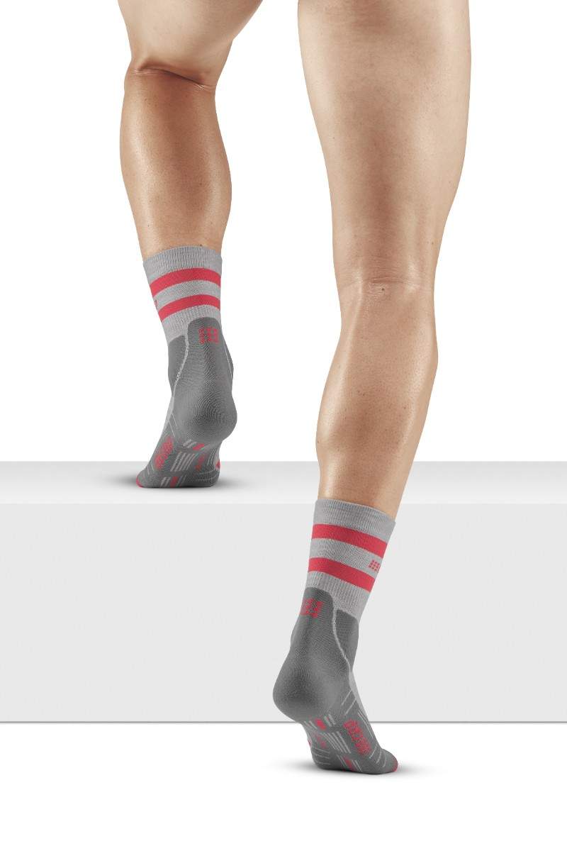 Męskie skarpety kompresyjne trekkingowe z wełną merino hiking 80's CEP krótkie szaro-czerwone