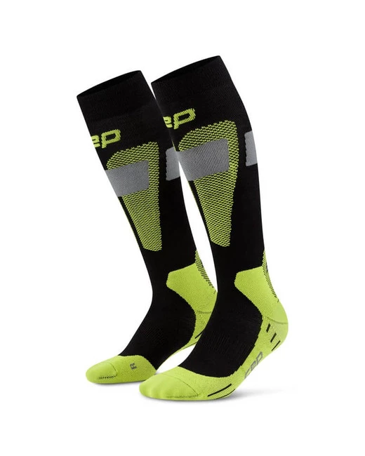 Męskie sportowe podkolanówki kompresyjne na zimę z wełną merino zielone CEP